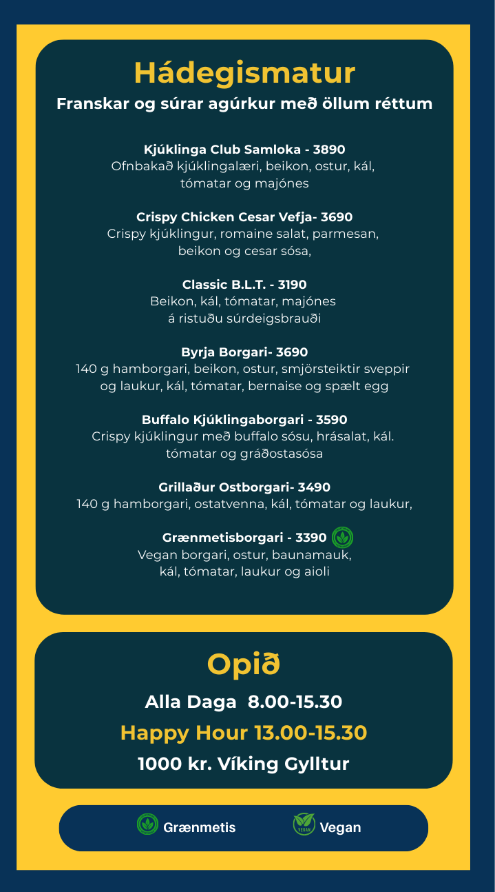Leiksvæði er fyrir börn og einnig sérstakur matseðill fyrir yngri kynslóðina.